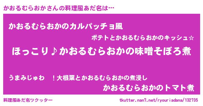 | 女子向けラノベタイトル風あだ名 | 『(仮)かおるむらおかのやんごとなき事情』 |
