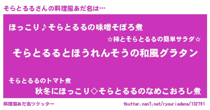 | 肩書あだ名 | 『そらとるる中将』『そらとるる店長』 |