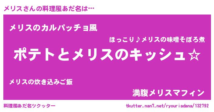 | ヘコむあだ名 | 『メリお』『メリス(笑)』『レバニラ』 |