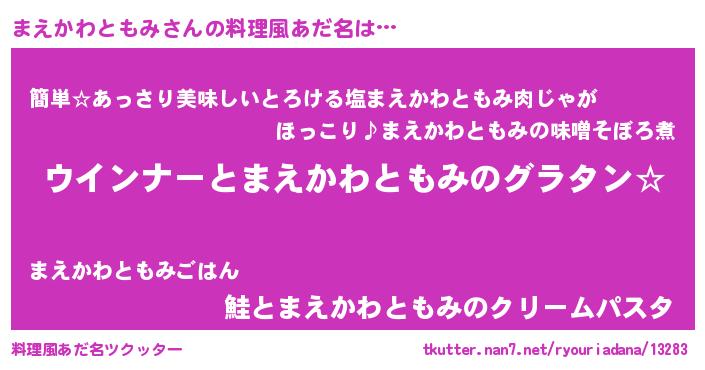 | 可愛いあだ名 | 『まえちー』『まえかわともみママ』 |