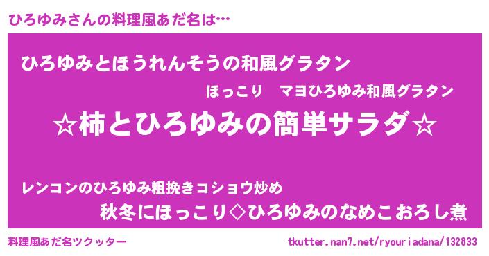 | 意味不明あだ名 | 『エリンギ科ひろゆみ属』『自称ひろゆみ』 |