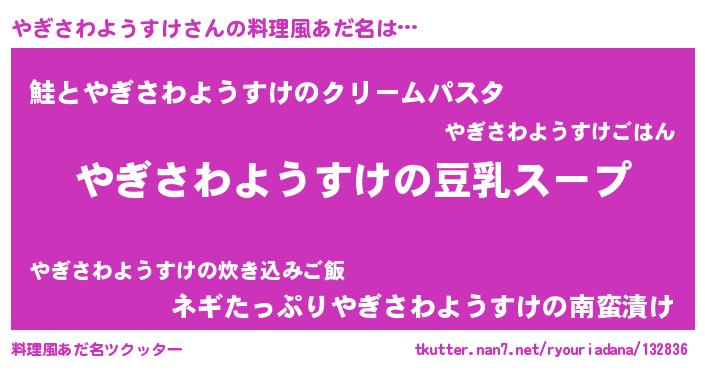 ポケモン風あだ名 | 『ヒヤギサワヨウスケ』『ヤックウザ』 |