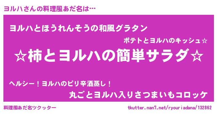 | ヘコむあだ名 | 『ヨルお』『豆乳』『ヨルハ(苦笑)』 |