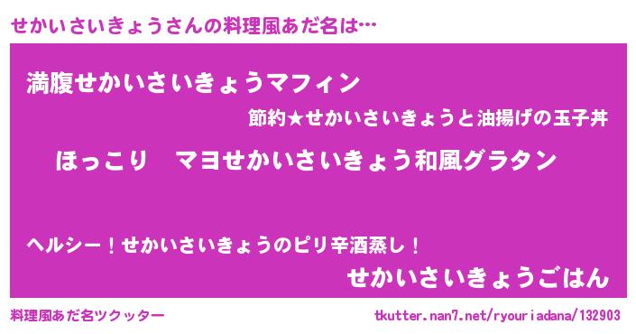 | 意味不明あだ名 | 『住所不定無職せかいさいきょう(98歳)』 |