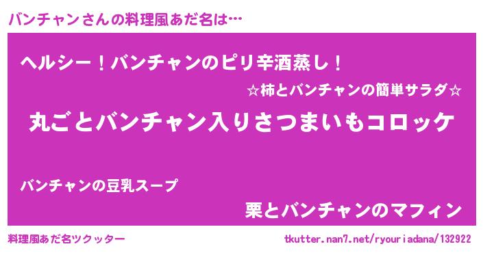 | 恥ずかしいあだ名 | 『バンチャンデラックス』『バンリンリン』 |