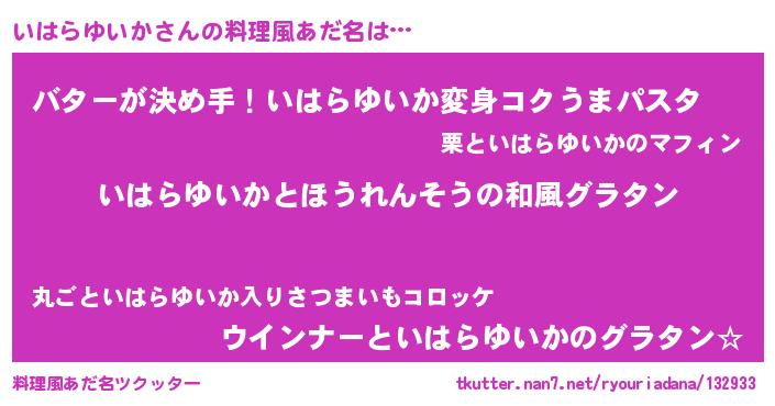 | 女子向けラノベタイトル風あだ名 | 『いはらゆいかの玉の輿計画!』 |