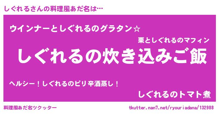 | ヘコむあだ名 | 『酢こんぶ』『しぐにー』『しぐ太郎』 |