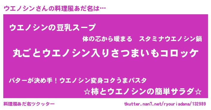 | 意味不明あだ名 | 『住所不定無職ウエノシン(50歳)』 |