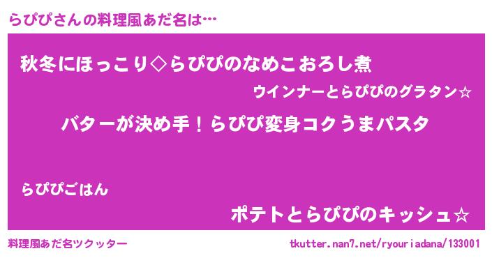 | ヘコむあだ名 | 『らぴっ子』『なまこ酢』 |