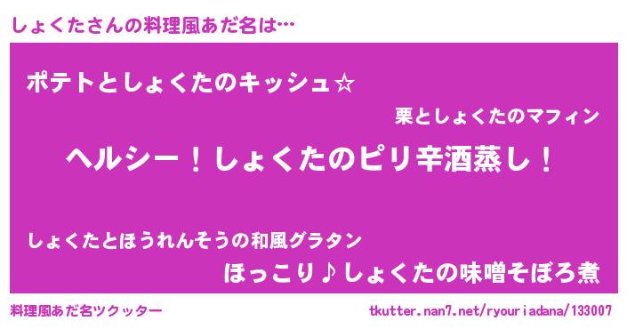 | 意味不明あだ名 | 『自称しょくた』『ペロリンしょくた』 |