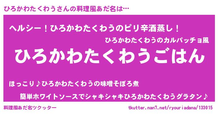 | 肩書あだ名 | 『ひろかわたくわう中将』 |