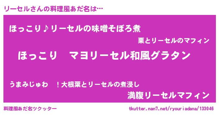| 意味不明あだ名 | 『住所不定無職リーセル(3歳)』 |