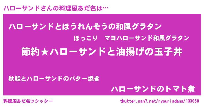 | ヘコむあだ名 | 『ハロふぇ~』『ハローサンド(震え声)』 |