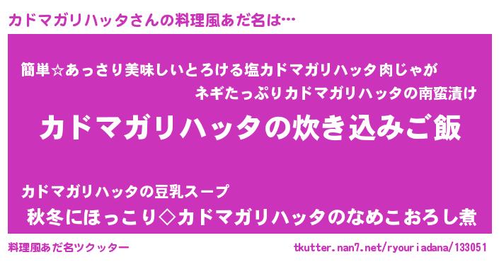 | 意味不明あだ名 | 『永久保存カドマガリハッタ』 |