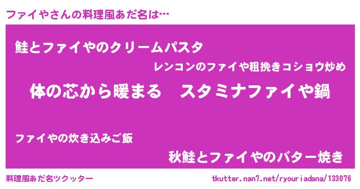 | 意味不明あだ名 | 『ファイやフォーエバー』『自称ファイや』 |