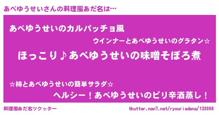 | 胡散臭い通販商品みたいなあだ名 | 『必ず成功する水晶球…その名も「あべゆうせい」』 |