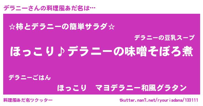 | 男性向けラノベタイトル風あだ名 | 『デラニーの憂鬱』『デラニースレイヤー』 |