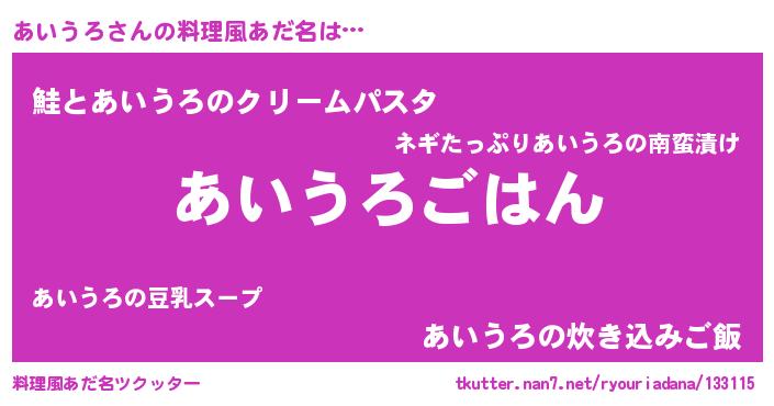 | ヒーロー風カッコイイあだ名 | 『正義の使者あいうろ』『天弓騎士アイ』 |