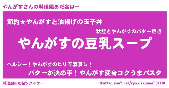 | 女子向けラノベタイトル風あだ名 | 『やんがすは平凡を望む』『闇のやんがす』 |