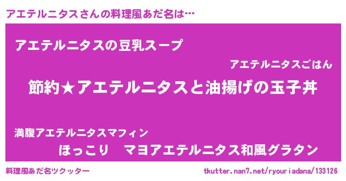 | ポケモン風あだ名 | 『アエチュウ』『ヒアエテルニタス』 |