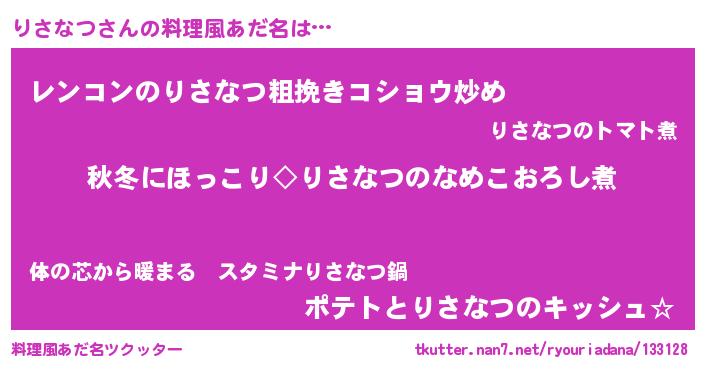 | ヒーロー風カッコイイあだ名 | 『究極戦士リサナツ』『銀牙騎士リサ』 |