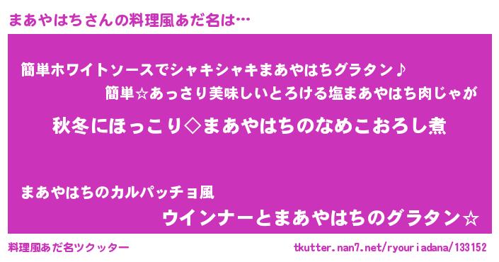 | 男性向けラノベタイトル風あだ名 | 『まあやはちに滅ぼされるだけの簡単なお仕事です』 |