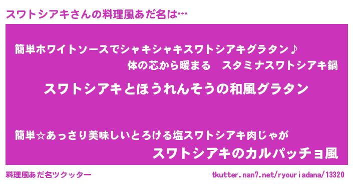 | 男性向けラノベタイトル風あだ名 | 『転生したらスワトシアキだった件』 |