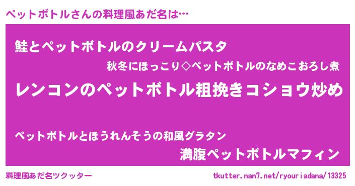 | 胡散臭い通販商品みたいなあだ名 | 『テレビで話題の高麗人参…その名も「ペットボトル」』 |