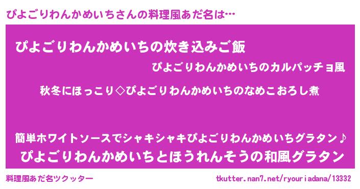 | 欧米人風あだ名 | 『アンジェラ・ぴよごりわんかめいち』 |