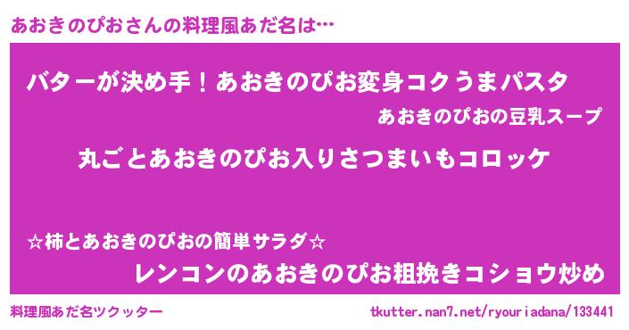 | 意味不明あだ名 | 『住所不定無職あおきのぴお(9歳)』 |