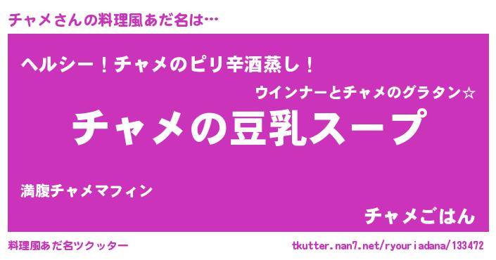 | 女子向けラノベタイトル風あだ名 | 『チャメは平凡を望む』『闇のチャメ』 |
