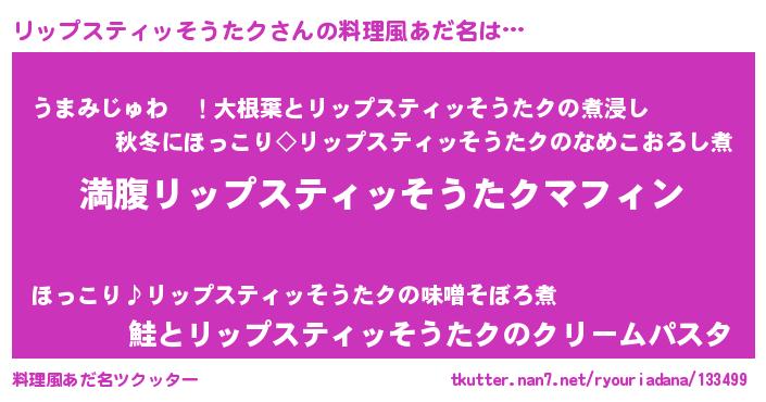 | ヘコむあだ名 | 『リップスティッそうたク(苦笑)』 |