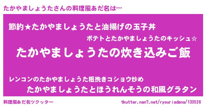 | 男性向けラノベタイトル風あだ名 | 『うちのたかやましょうたが世界を掌握している!』 |