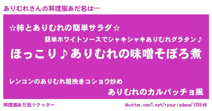 | 男性向けラノベタイトル風あだ名 | 『ありむれの憂鬱』『魔弾の王とありむれ』 |