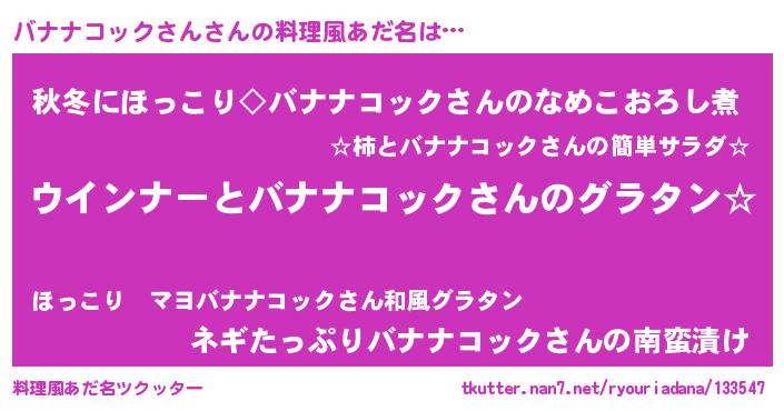| ファンタジー風あだ名 | 『エターナルバナナコックサンー』 |