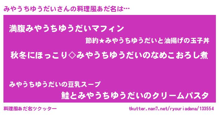 | ヘコむあだ名 | 『みやうちゆうだい(笑)』『みやもー』 |