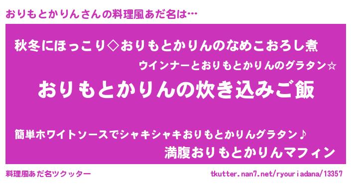 | ヘコむあだ名 | 『おりもとかりん(遠い目)』『豆乳』 |