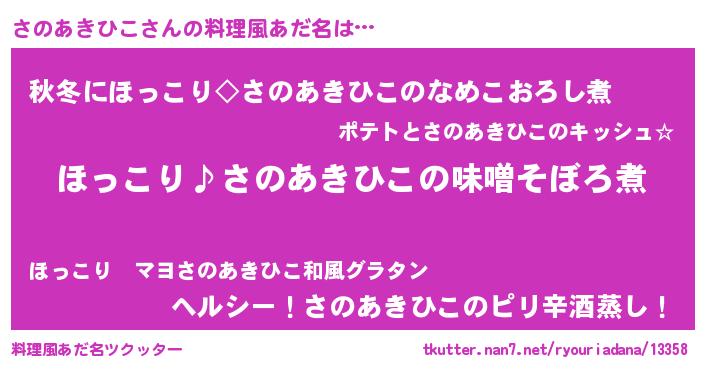 | 胡散臭い通販商品みたいなあだ名 | 『必ず成功する霊験あらたかなお札…その名も「さのあきひこ」』 |