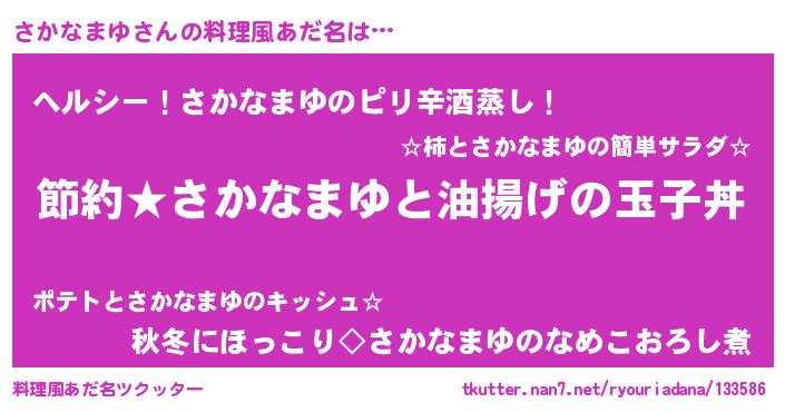| ヒーロー風カッコイイあだ名 | 『スーパーサカナマユ』『炎刃騎士サカ』 |