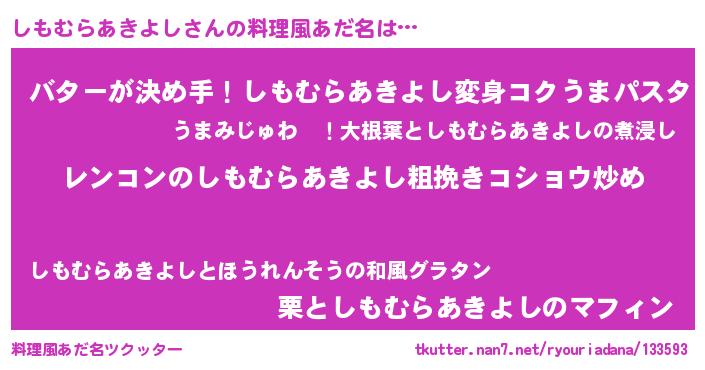 | 意味不明あだ名 | 『自称しもむらあきよし』 |