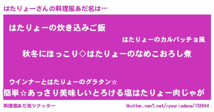 | 男性向けラノベタイトル風あだ名 | 『はたりょーに滅ぼされるだけの簡単なお仕事です』 |