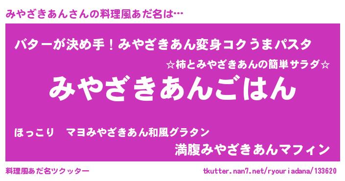 | ヘコむあだ名 | 『みやざきあん(苦笑)』『なまこ酢』 |