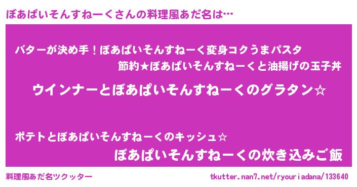 | 肩書あだ名 | 『ぼあぱいそんすねーく国家主席』 |
