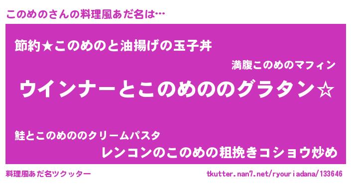 | 意味不明あだ名 | 『このめのフォーエバー』『自称このめの』 |