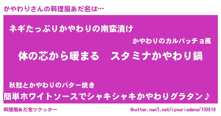 | 欧米人風あだ名 | 『かやわりクリステル』 |