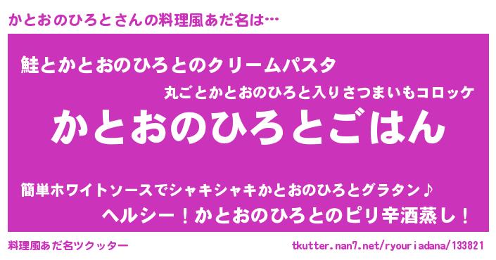 | ヘコむあだ名 | 『かとっぺ』『かとおのひろと(笑)』 |