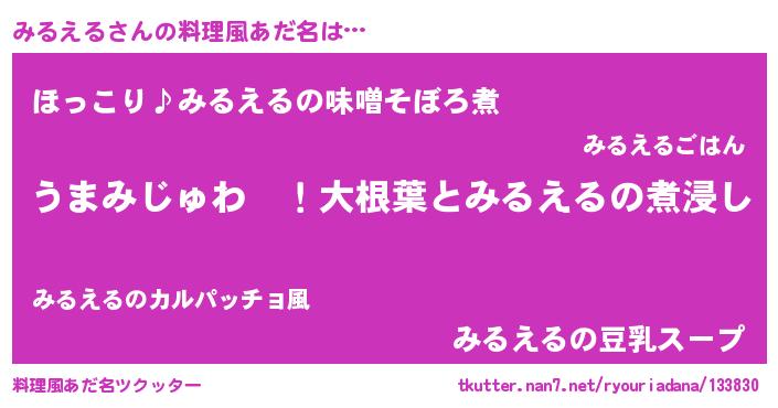 | ファンタジー風あだ名 | 『エターナルミルエルー』『ミルフェル』 |