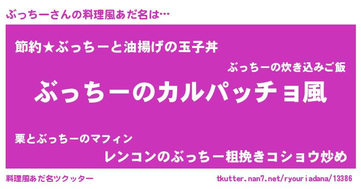 | 女子向けラノベタイトル風あだ名 | 『ぶっちーが死なない童話 林檎のぶっちーの診療簿』 |