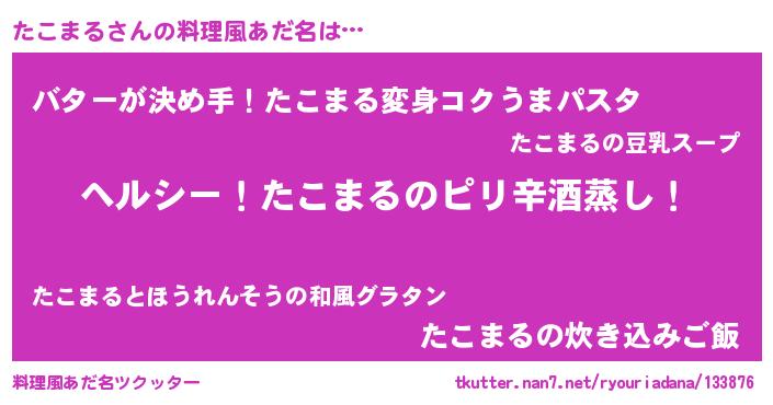| 男性向けラノベタイトル風あだ名 | 『Re:たこまるから始める異世界生活』 |