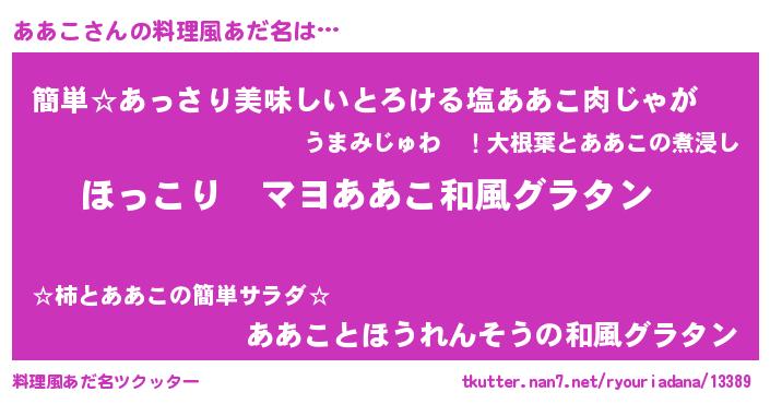 | 男性向けラノベタイトル風あだ名 | 『この素晴らしい世界にああこを!』 |